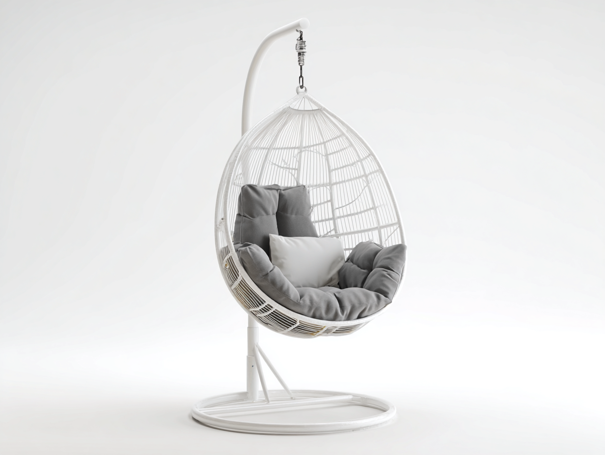 Hängesessel-105x105x195 cm-Weiß-Grau-Rattan Hängesessel mit Gestell-Ei Hängesessel für Garten Balkon Terrasse moderner Stil