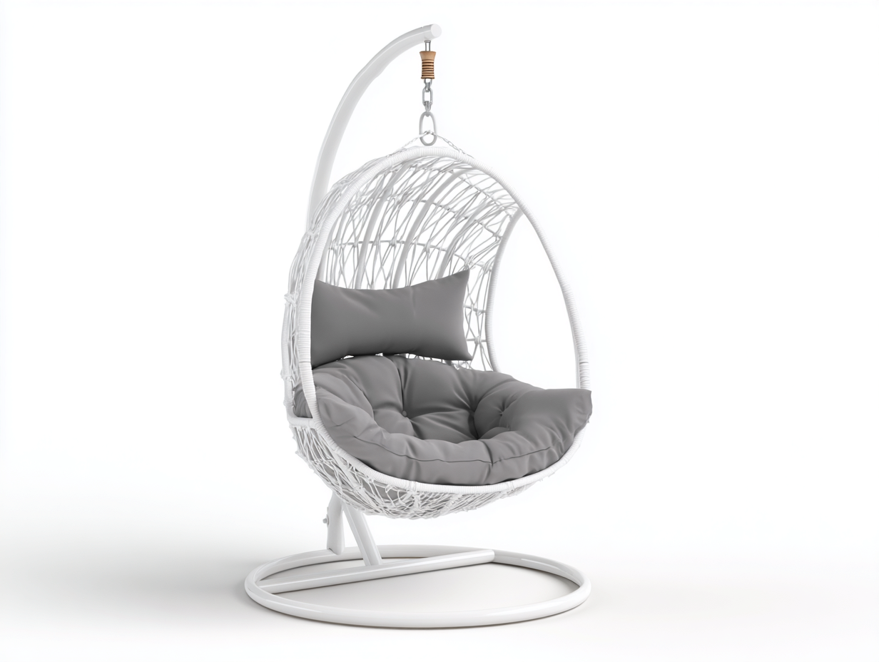 Hängesessel-105x105x195 cm-Weiß-Grau-Rattan Hängesessel mit Gestell-Ei Hängesessel für Garten Balkon und Terrasse moderner Stil