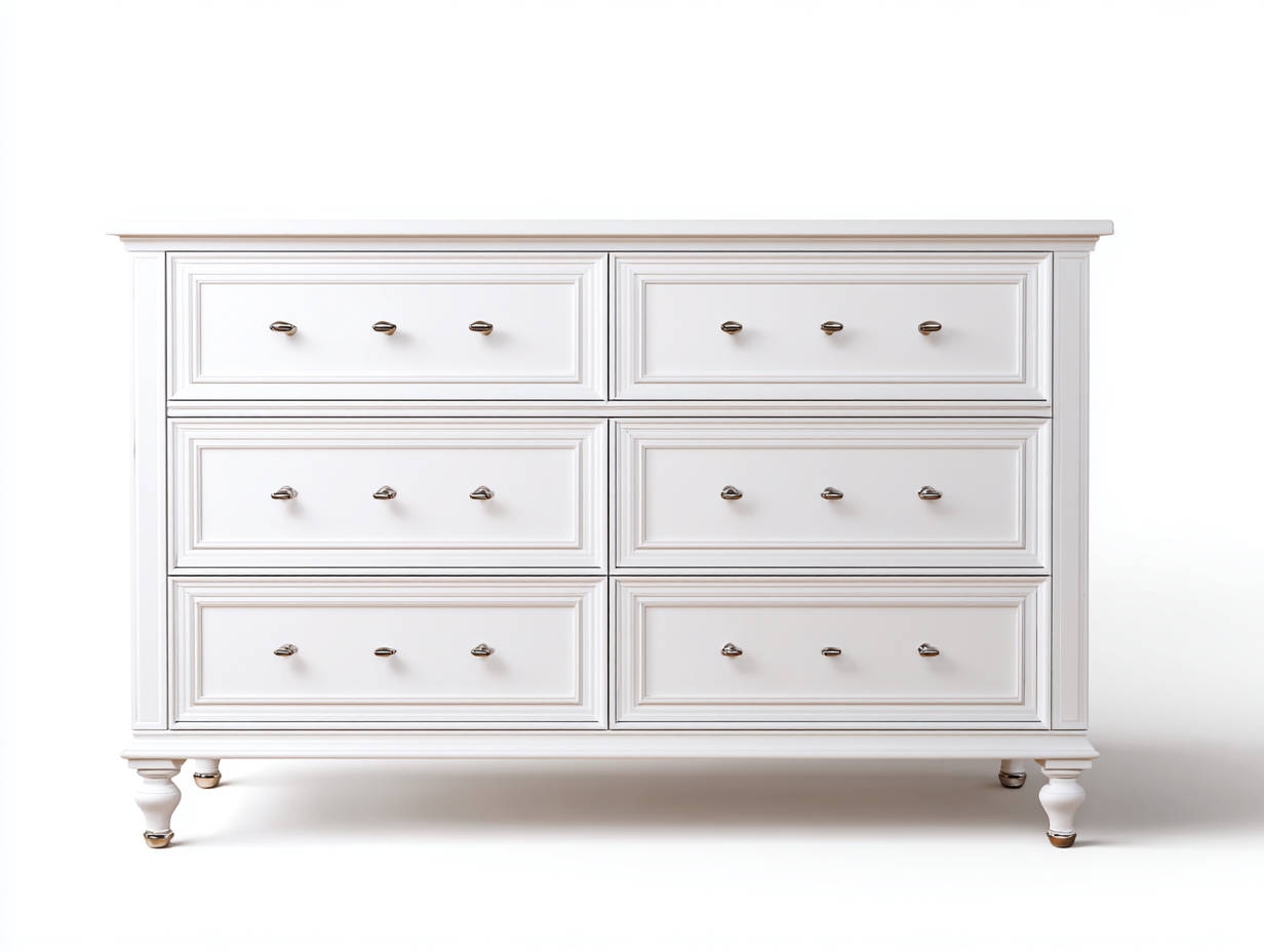 Kommode Holz-140x45x85 cm-Weiß-Klassische Schlafzimmer Aufbewahrungskommode mit 6 Schubladen